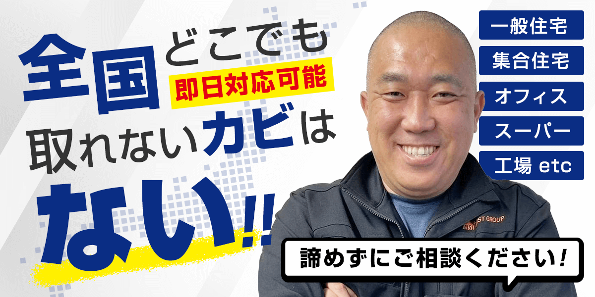 「カビ臭いけど、原因が特定できない」「目に見えない真菌の健康被害が心配」「壁一面に黒カビが大量発生している」といった、あらゆるカビの影響でお困りのご依頼者様。カビ取り専門店カビバスターズが迅速に出動します!プロの技術と専門知識に基づく科学的なデータ、高精度な菌検査でカビの原因や種類を特定。独自開発のMIST工法Ⓡを用いた、安心安全な徹底除去と防カビ施工で、構造的な建物保全を図りながらカビトラブルを根本から解決。カビは建物の寿命を縮め、腐食や劣化を早めます。北陸・関東・甲信・中部・関西・中四国・九州・沖縄、そして北海道・東北地方のお客様にも柔軟に全国対応していますので、カビトラブルにお悩みの方は、まずは一度ご相談ください!専門技術をもって、全国どこへでも駆けつけ、カビ取りや再発防止に向けた防カビ対策まで施します。