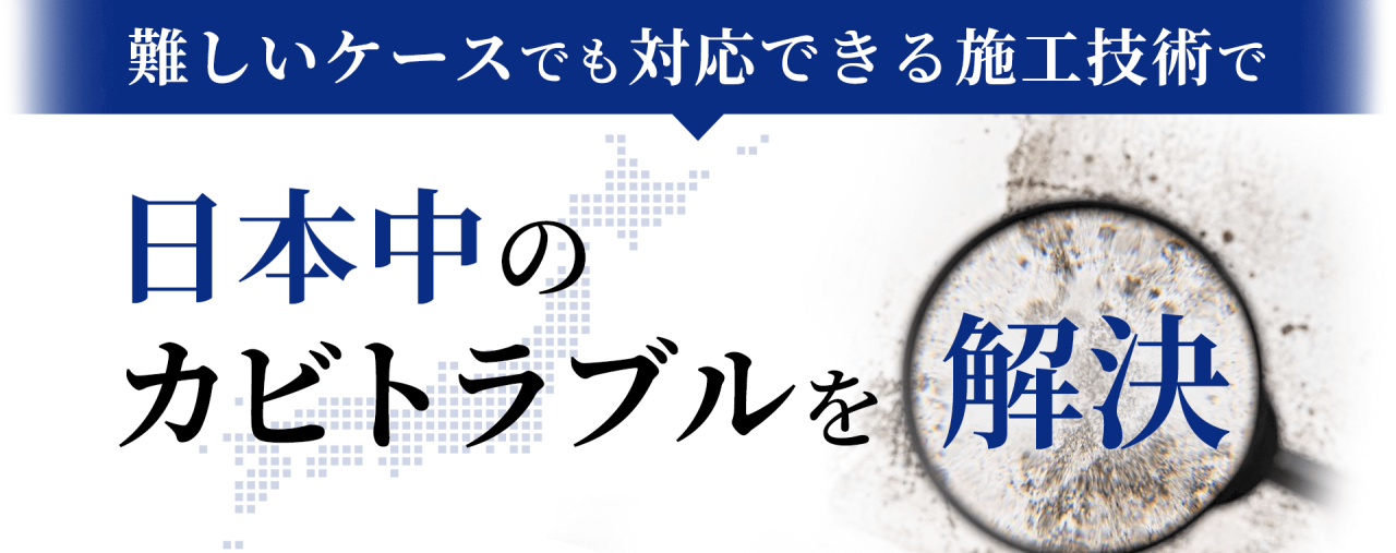 全国のカビ問題はカビバスターズグループにお任せください。北海道から沖縄まで各拠点の「カビ取り・カビ対策のプロフェッショナル」が、素材を擦らず・削らず・傷めない独自の技術でお客様のお悩みを早期解決!一般家庭のご依頼から食品工場や病院・大型施設など事業者様からのご依頼も幅広く対応。重要文化財や公共施設などの実績も多数です。