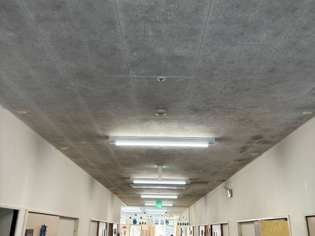 介護施設の廊下や居室などの天井(ジプトーン)にカビが発生したため、カビ取り・カビ対策を実施しました。気密性能が高い建物で24時間空調管理されている施設は、カビが発生しやすい現場の1つです。
