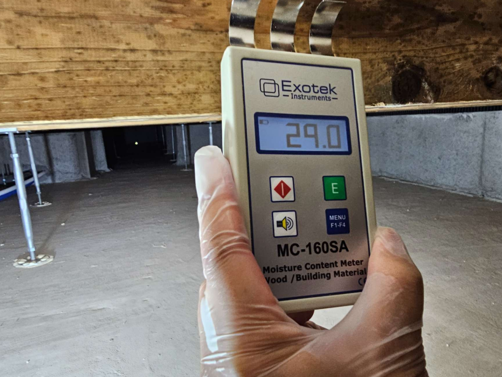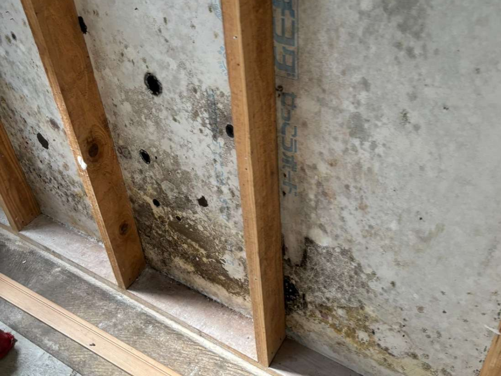 ユニットバスからの漏水により、ご依頼をいただきました。長年少しずつ漏水しており、フローリングや壁の内部など、様々な箇所でカビが発生している状況でした。カビバスターズ福岡では含水率測定を実施し、水分を多く含んでいる箇所・場所の範囲を特定。その後、解体・除カビ・抗菌・乾燥を行い、原状回復しました。