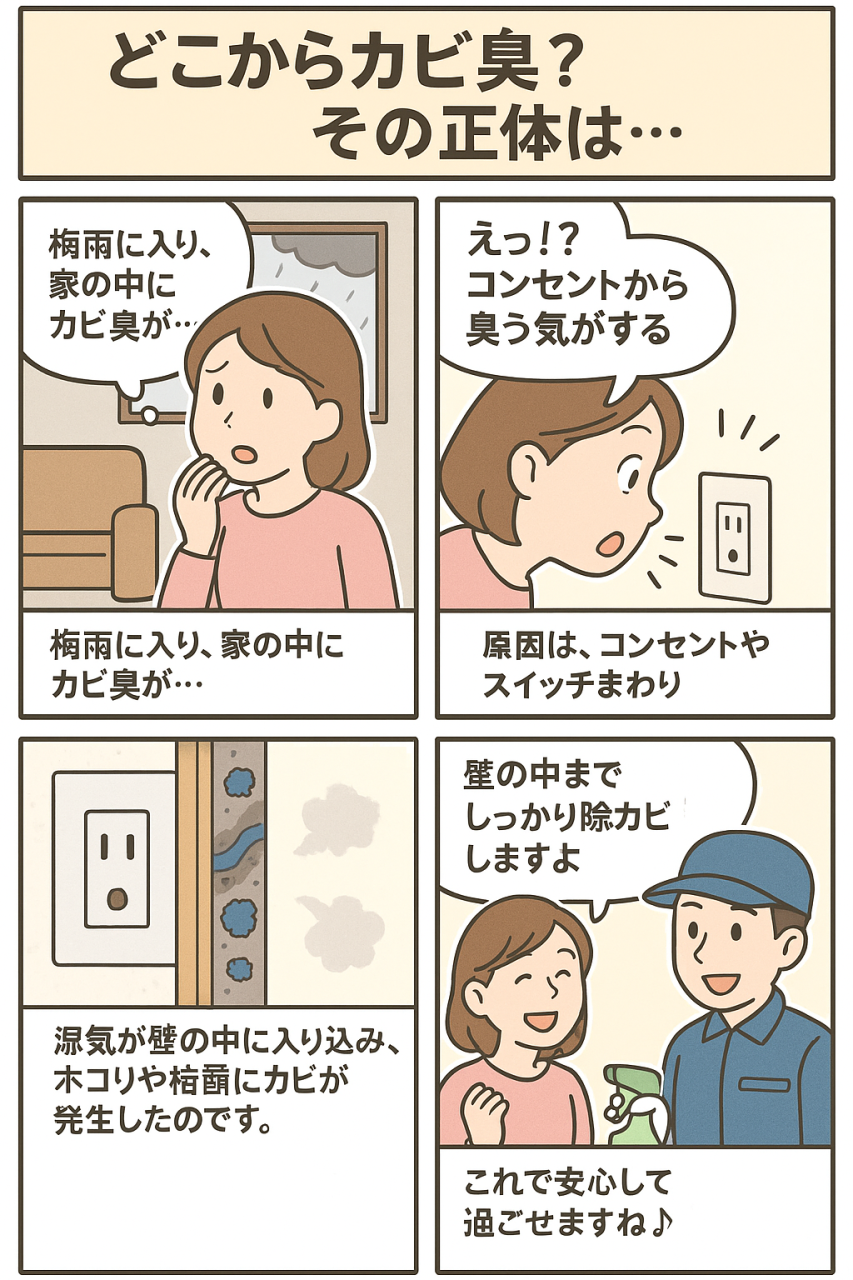 梅雨の室内に潜むカビ臭の正体──コンセント・スイッチから漂う異臭をMIST工法®で解決!