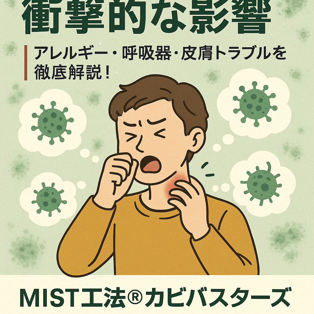 「カビ」と聞くと、見た目やにおいで気づきやすい部分ばかりを思い浮かべがちですが、実際には目に見えない胞子が空気中に漂い、それを吸い込むことで鼻炎やぜんそくの症状が悪化するケースも少なくありません。実際に、医学的な研究においても「カビの多い住環境に暮らす子どもは、呼吸器系の症状を起こしやすい」というデータが示されています📊。