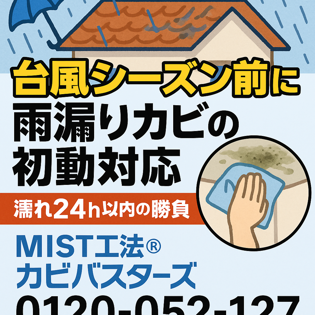 台風シーズン前に必読⚡「雨漏りカビ」初動対応!濡れ24時間以内が勝負です⏰