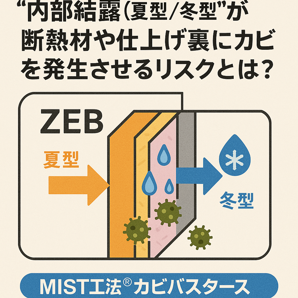 ZEB建物の外皮で起こる“内部結露(夏型/冬型)”が断熱材や仕上げ裏にカビを発生させる理由とは?
