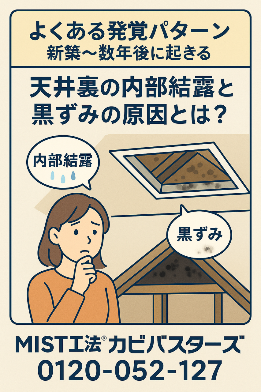 【よくある発覚パターン】新築~数年後に起きる天井裏の内部結露と黒ずみの原因とは?