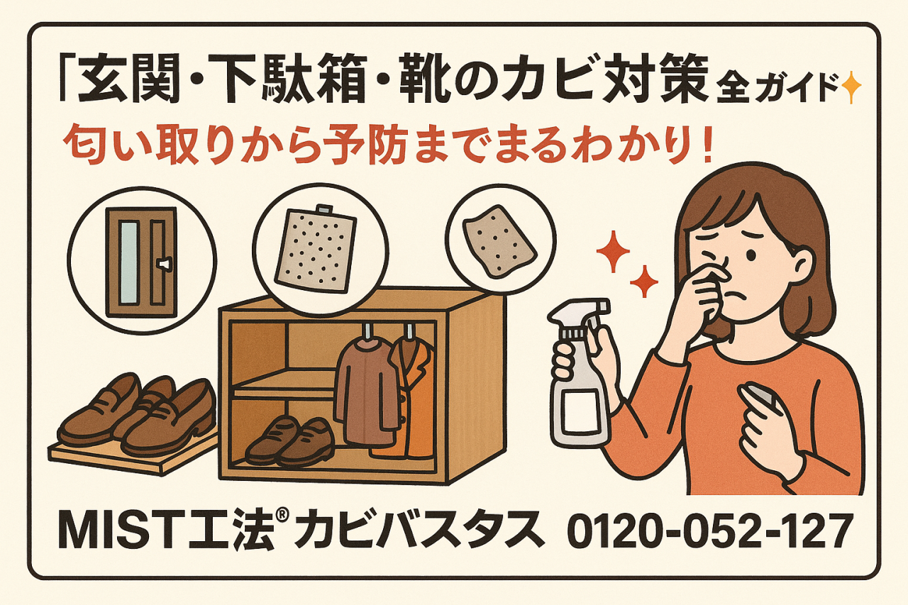 ただし、すでに下駄箱全体に広がってしまったカビや、何度掃除しても再発する頑固なカビは、自己流ではなかなか解決できません。そんなときは、全国各地にある MIST工法®カビバスターズ にぜひご相談ください💪😊。専門スタッフが的確に原因を突き止め、安心できる環境を取り戻すお手伝いをいたします。