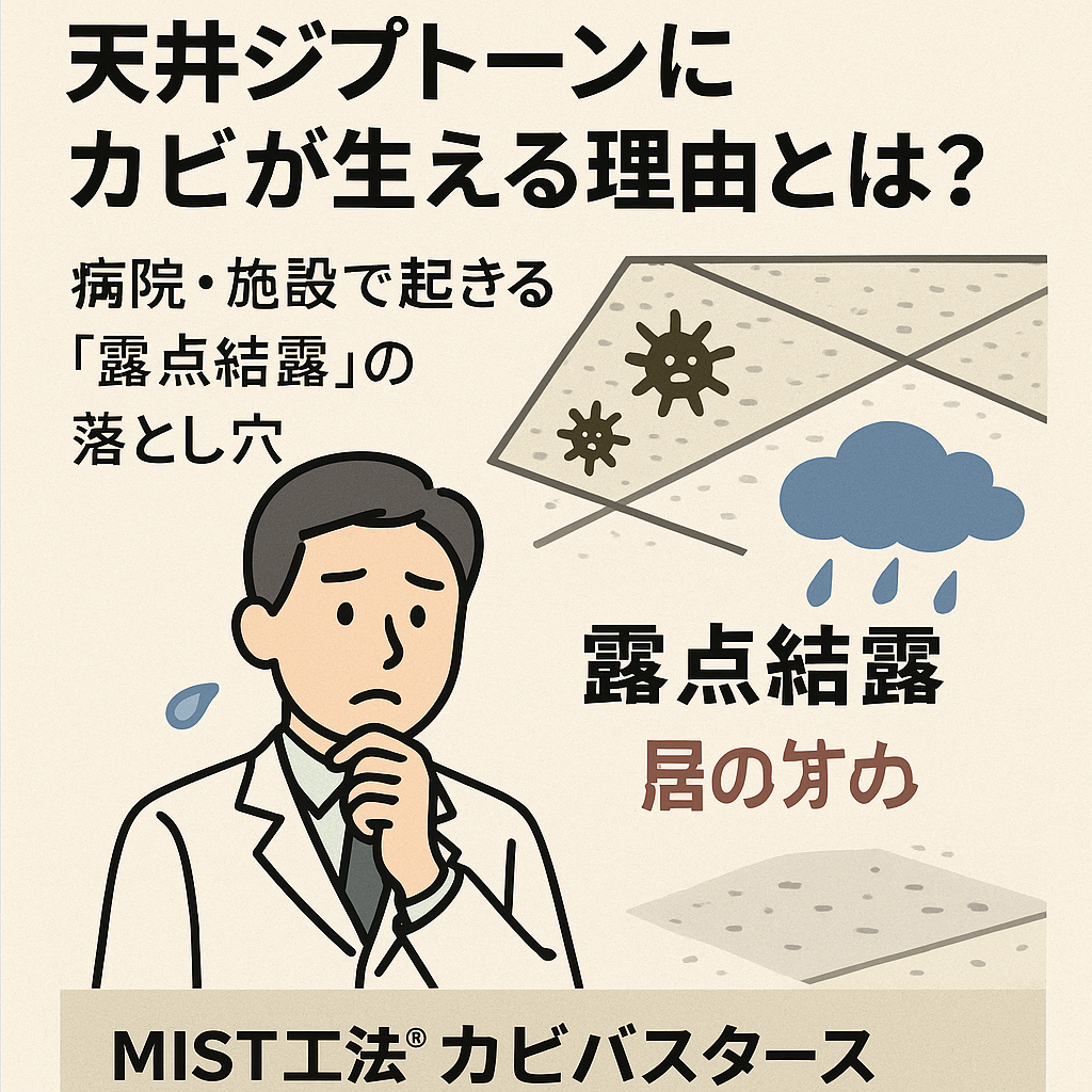 この記事では、こうした天井ジプトーンのカビ発生の仕組みを、病院や施設の実情に即してわかりやすく解説していきます。そして最後に、「カビを見つけたらどうすべきか」「専門家に相談することの重要性」についても触れます。