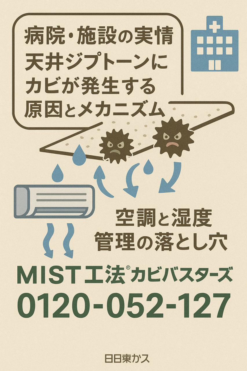 【病院・施設の実情】天井ジプトーンにカビが発生する原因とメカニズム|空調と湿度管理の落とし穴
