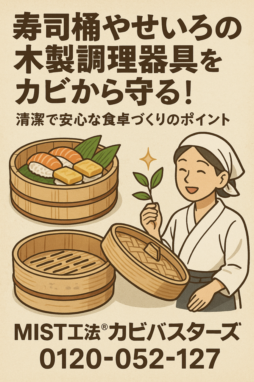 「寿司桶やせいろのカビ対策は、MIST工法®カビバスターズにお任せください!」