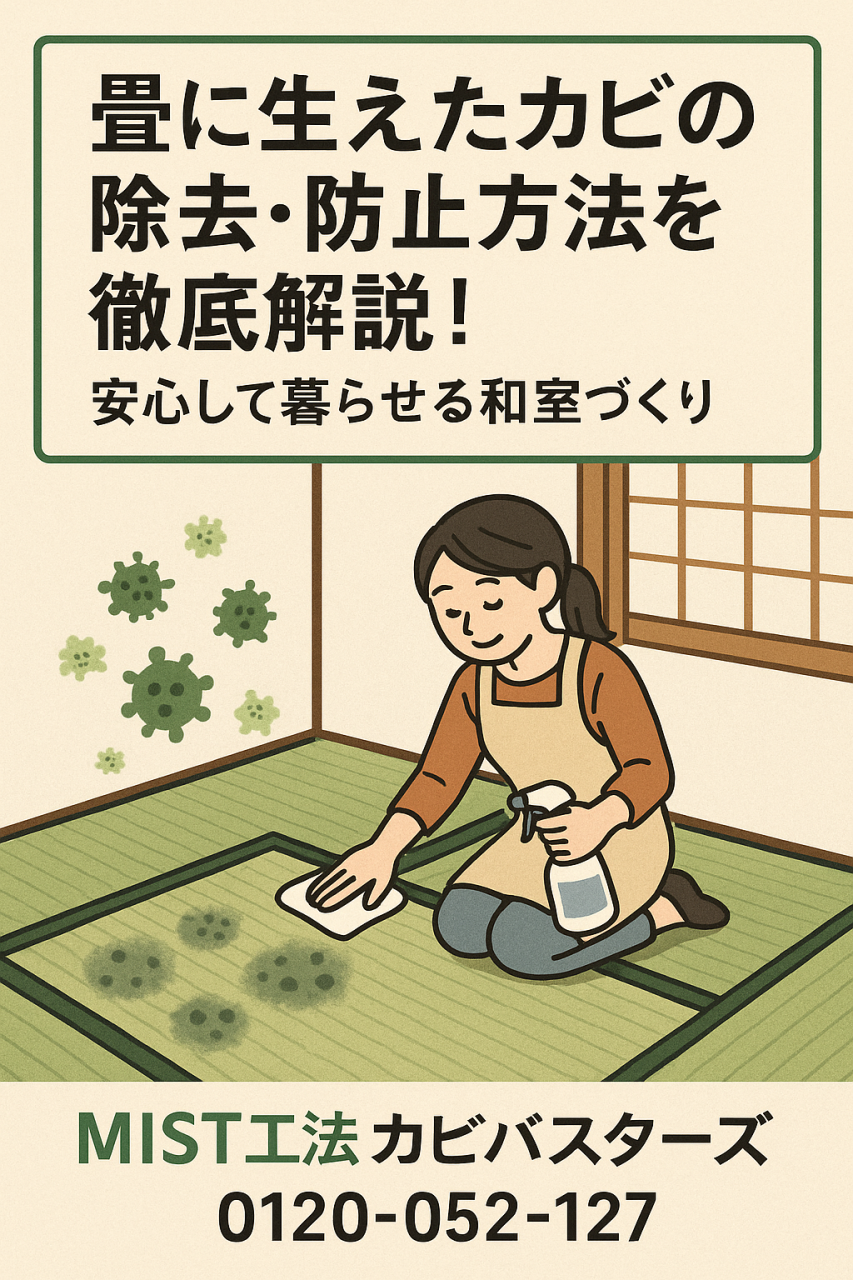畳のカビは、日常の換気や掃除である程度は防げますが、広がってしまった場合や再発を繰り返す場合には家庭での対処は限界があります。そんなときは MIST工法®カビバスターズ にご相談ください。全国対応で安心、専門知識と技術で徹底的にカビを除去し、快適な和室を取り戻すお手伝いをいたします。