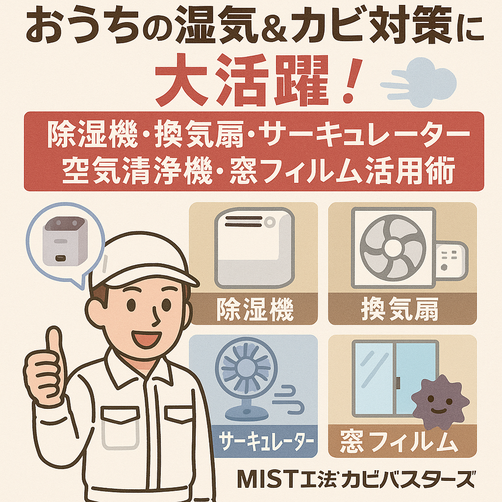 「除湿機」「換気扇」「サーキュレーター」「空気清浄機」「窓フィルム」などの