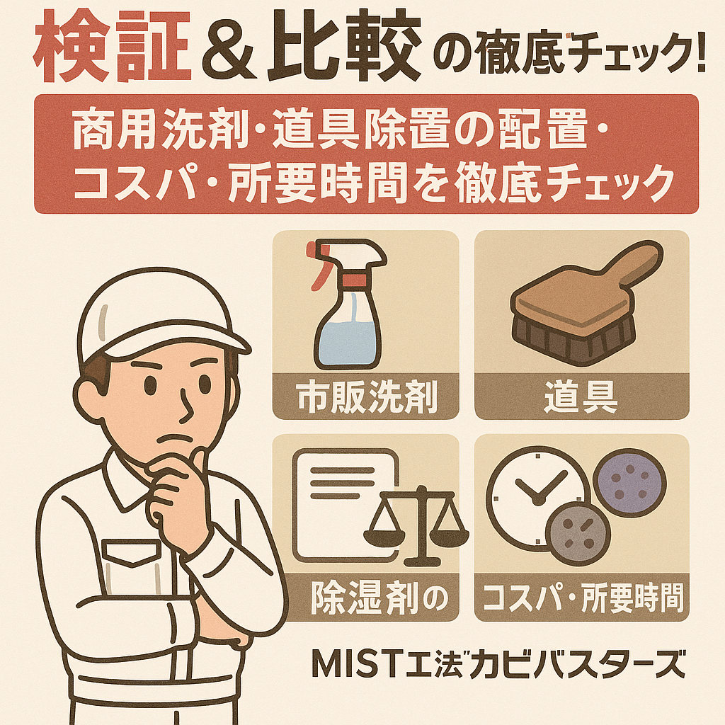 あなたのカビ対策、本当に効果ありますか?💦 市販洗剤や除湿剤の配置を徹底検証。効率・コスパ・時間の差をプロ目線で比較しました!