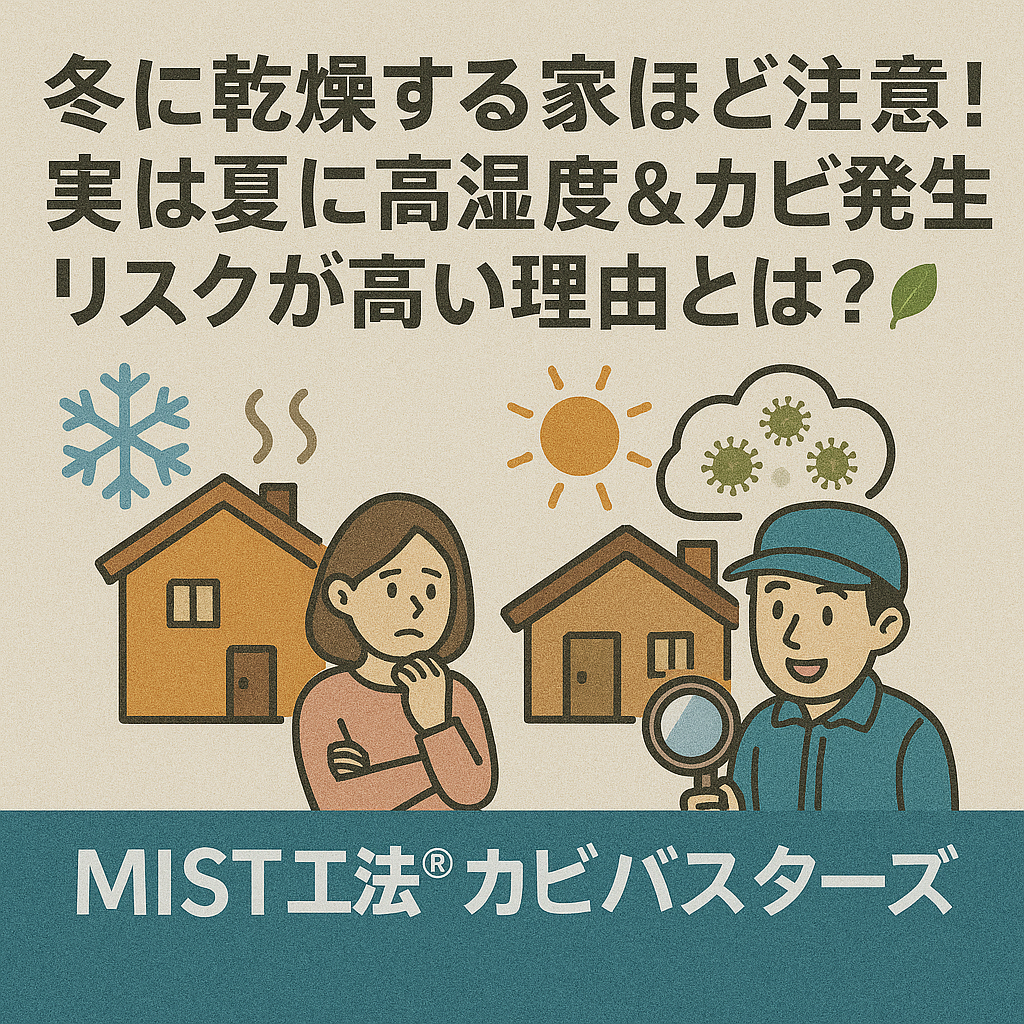 冬にカラッと乾燥する家は快適そうに見えて、実は夏に“カビ天国”になりやすい⁉️ その原理と対策を、MIST工法®カビバスターズ本部がやさしく解説します✨