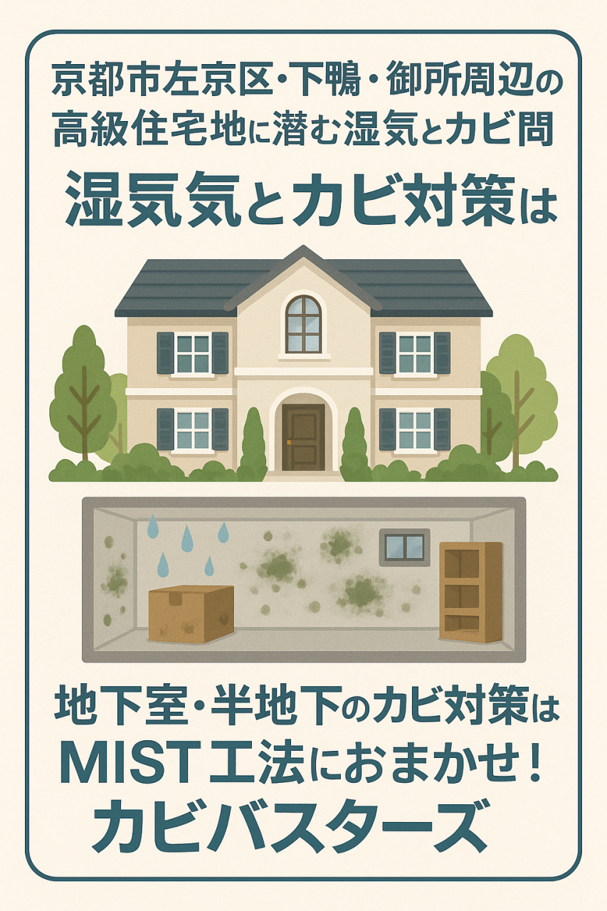 京都市左京区・下鴨・御所周辺の高級住宅地に潜む湿気とカビ問題|地下室・半地下のカビ対策はMIST工法®におまかせ!
