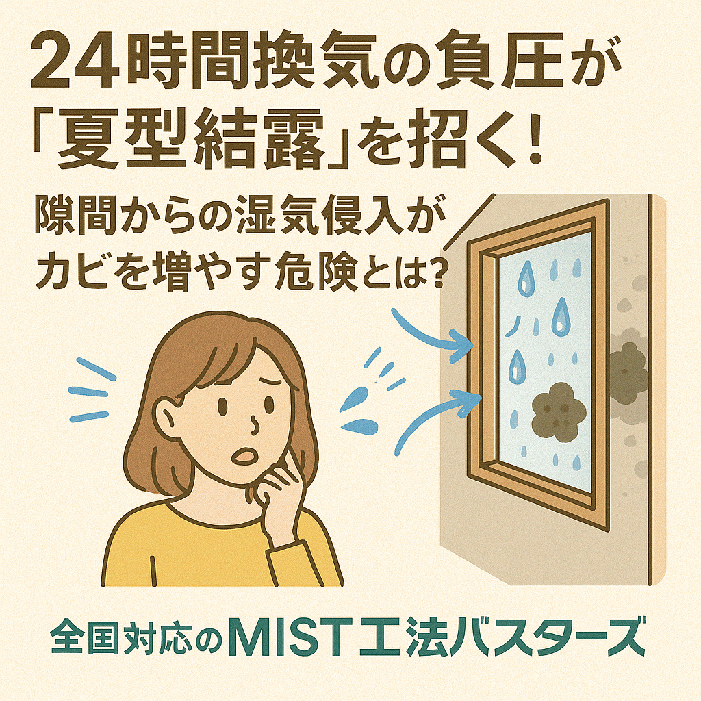 24時間換気の負圧が「夏型結露」を招く!隙間からの湿気侵入がカビを増やす危険とは?【全国対応|MIST工法®カビバスターズ】
