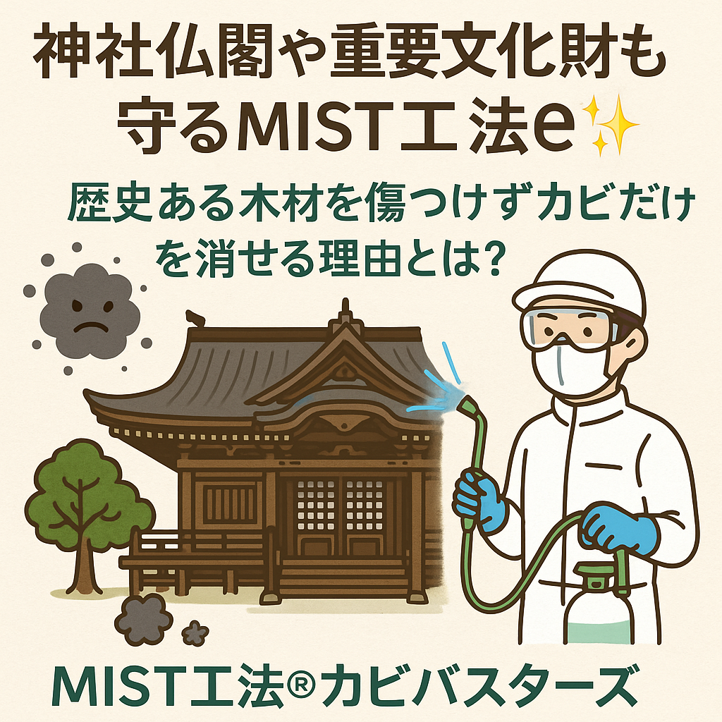 神社仏閣や重要文化財も守るMIST工法®✨歴史ある木材を傷つけず“カビだけ”を消せる理由とは?