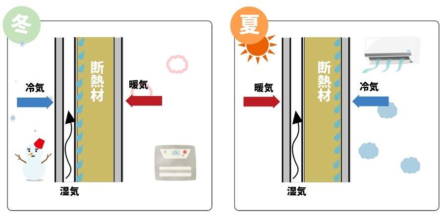 👉 壁の中で結露が発生
